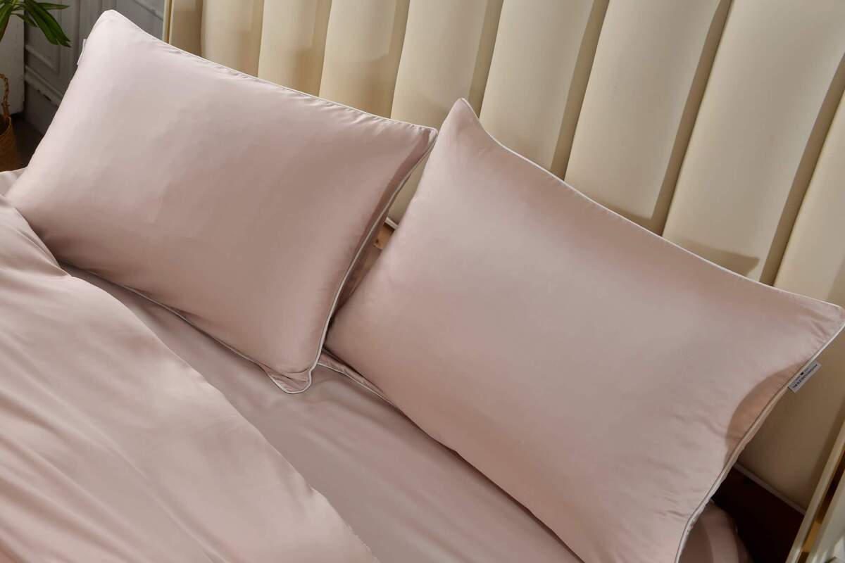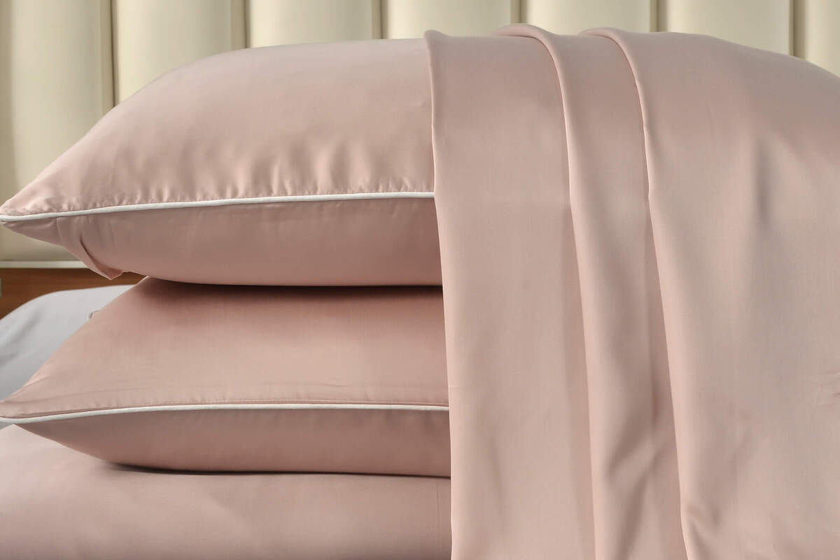 Для нашего фирменного постельного белья Elizabeth мы используем 100% тенсель (эвкалиптовое волокно) пряжи 60s, сатиновое плетение плотностью 300ТС. Комплект выполнен в однотонном дизайне с изящным белым кантом по краю пододеяльника и наволочек.
